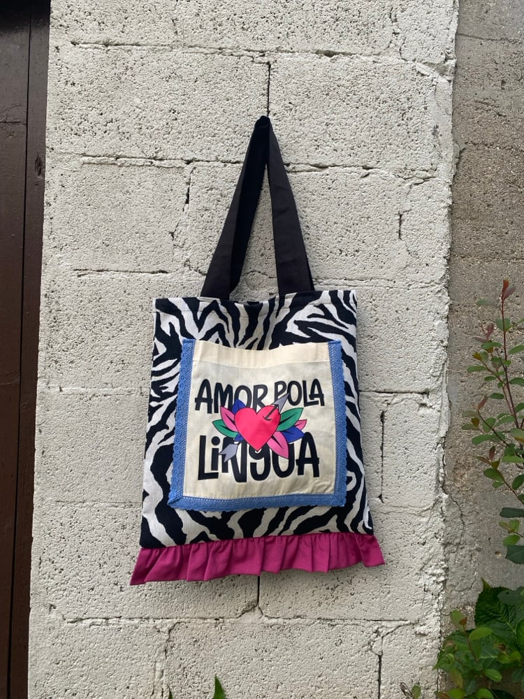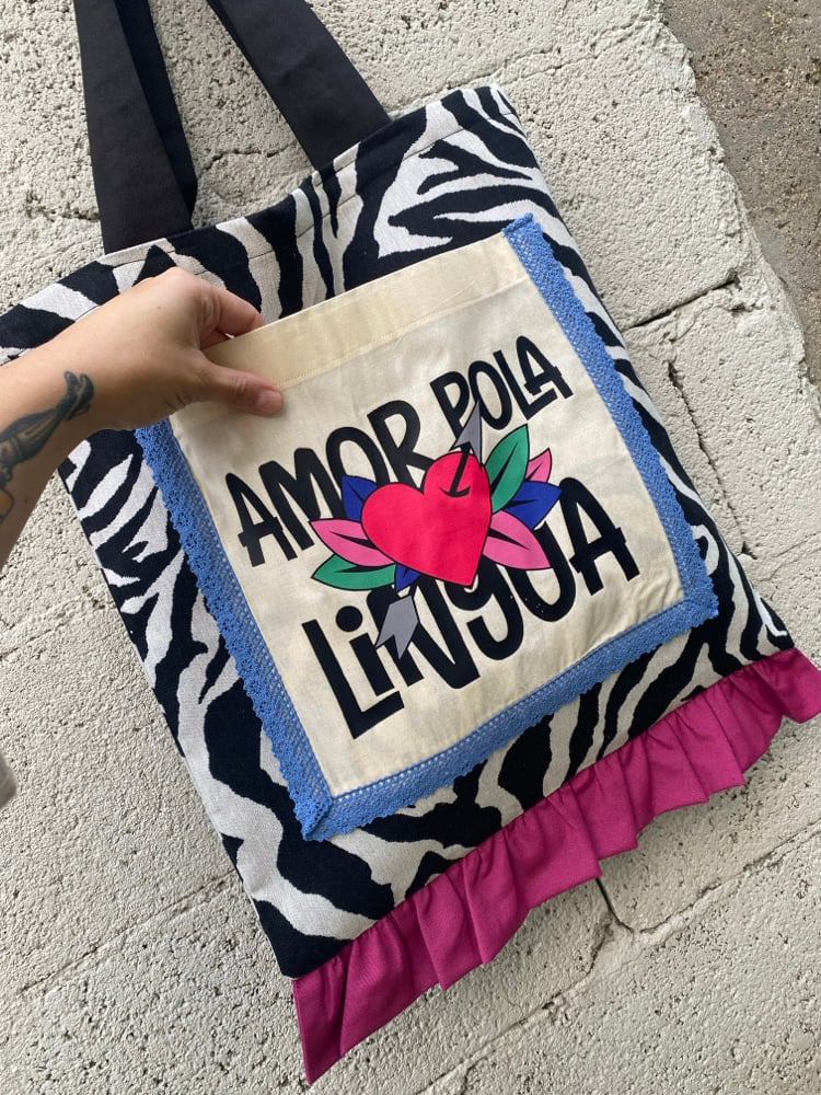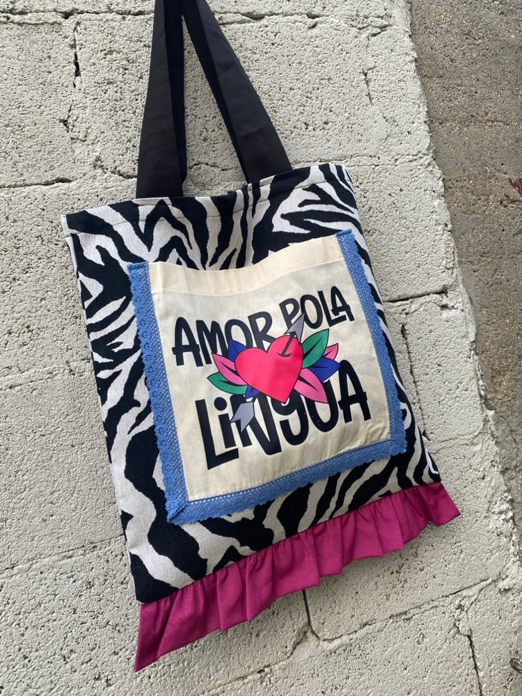 Bolsiña feita a man. AMOR POLA LINGUA cebra. Deseño exclusivo!