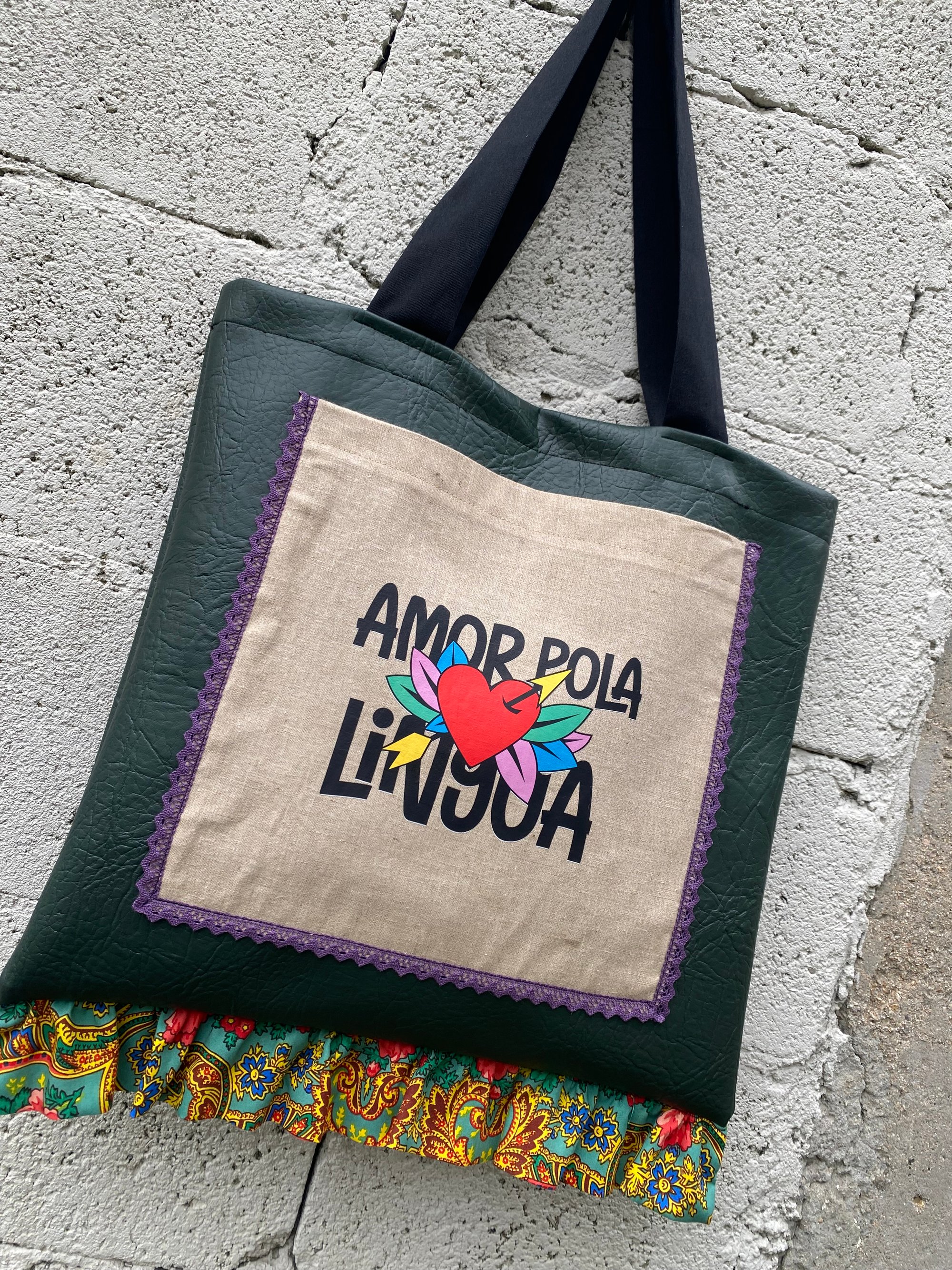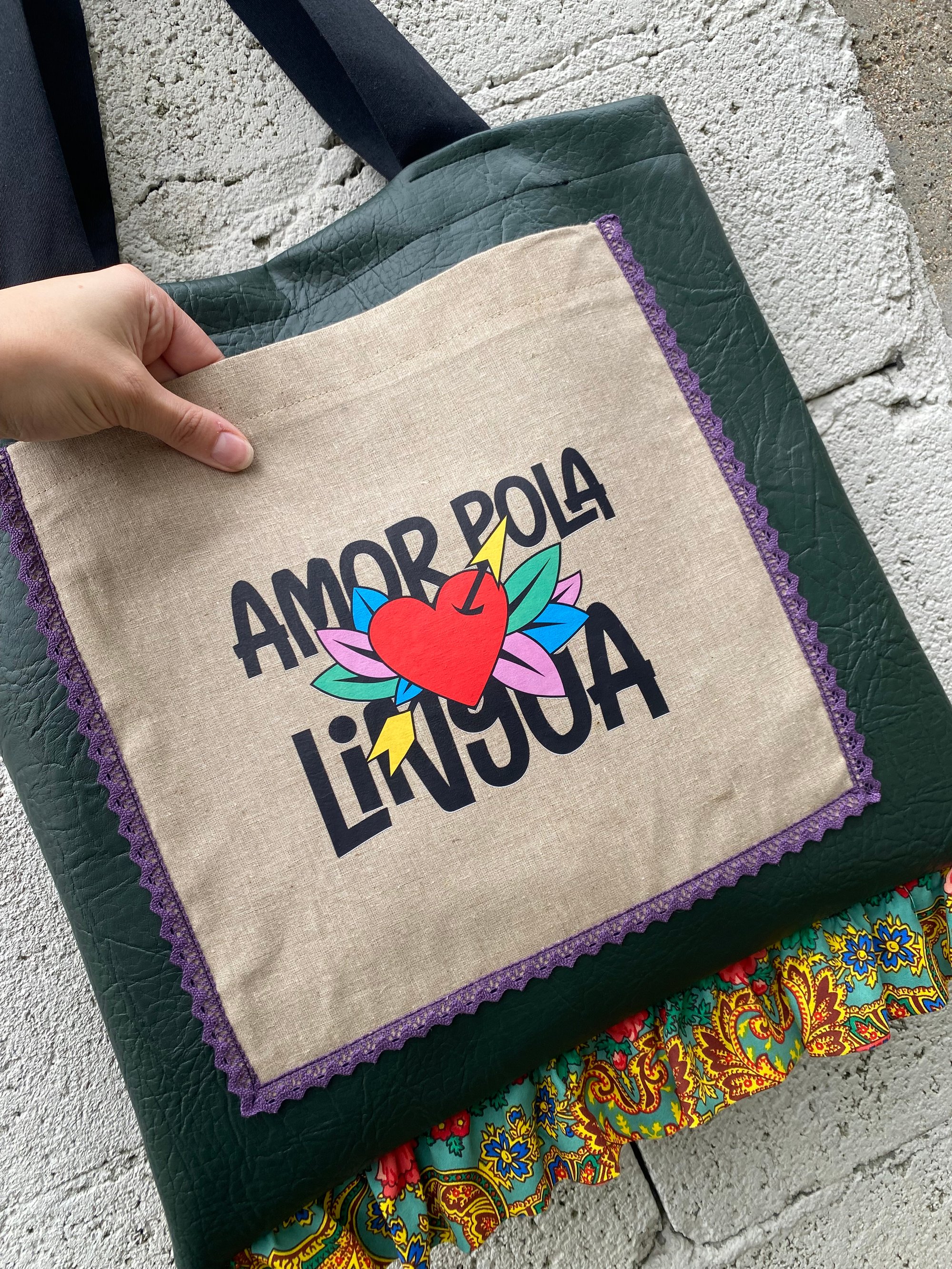 Bolsiña feita a man. AMOR POLA LINGUA polipiel. Deseño exclusivo!