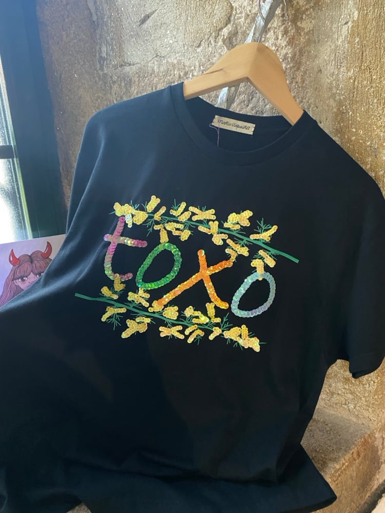 Camiseta bordada a man. TOXO negra. Talla S. En STOCK!