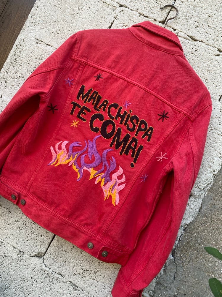 Cazadora bordada a man. MALA CHISPA TE COMA! Talla S. Deseño exclusivo!
