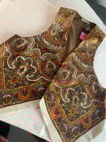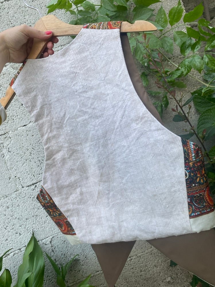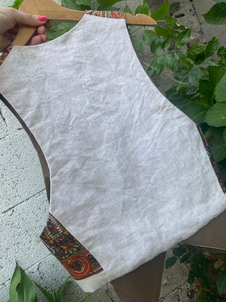 Chaleco FOLIADA. Feito con un pano tradicional de 100 cores, 100% la. A espalda é de liño tradicional. Está forrado.