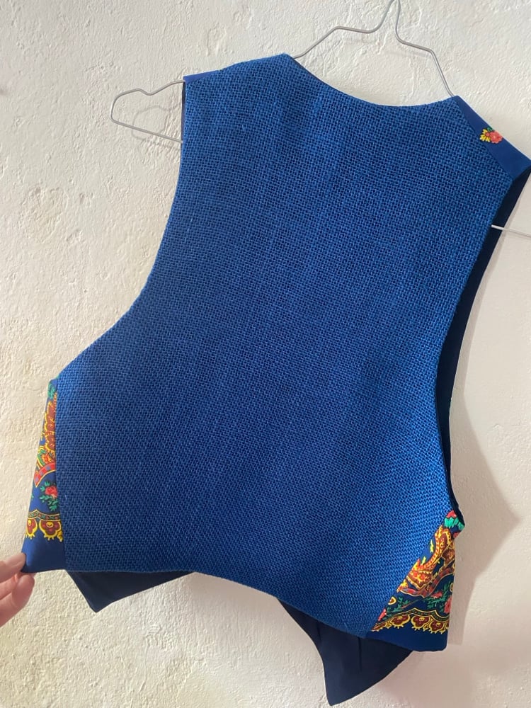 Chaleco FOLIADA. Feito con un pano tradicional. A espalda é tea de saco. Está forrado.