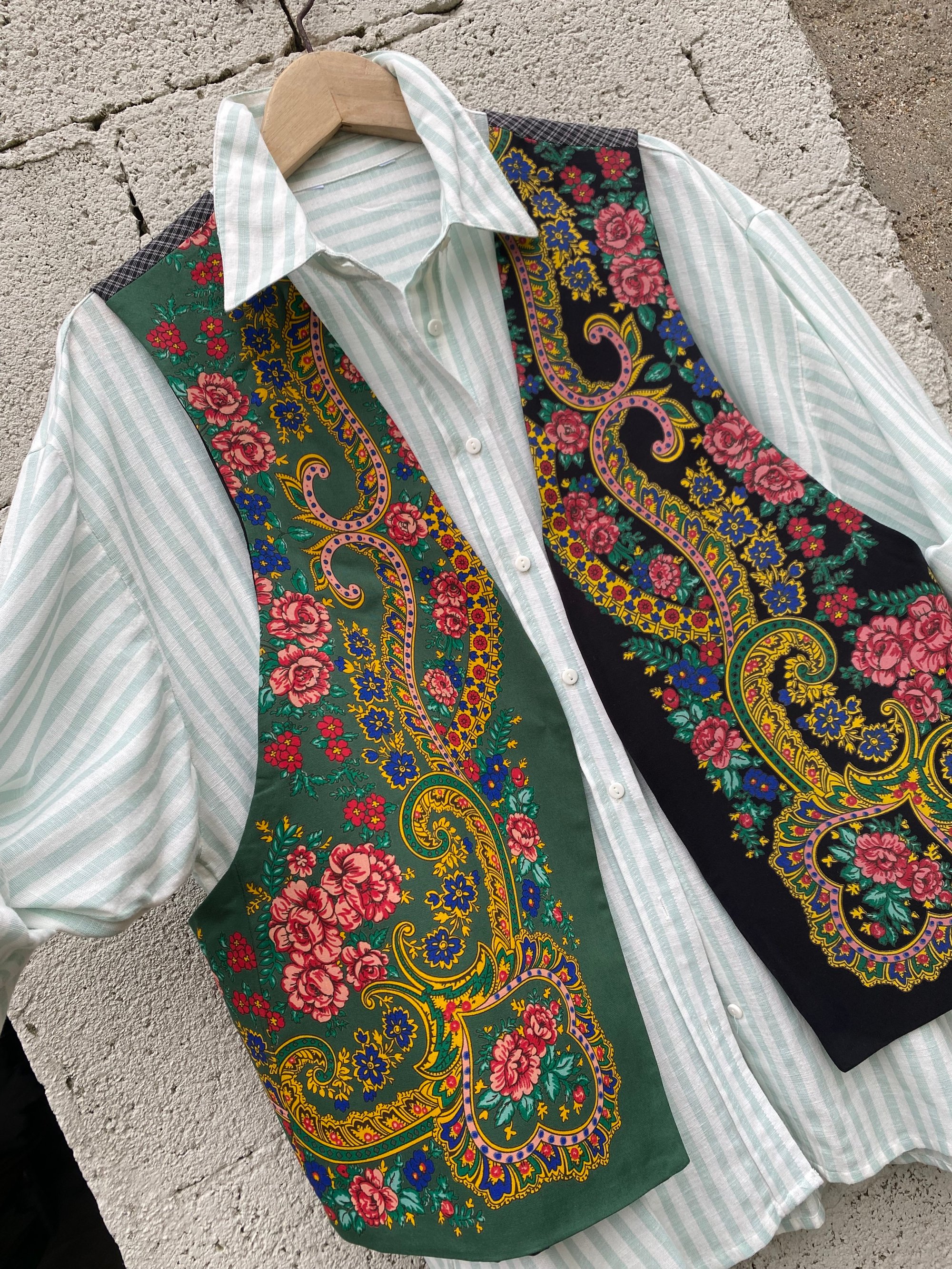 Chaleco FOLIADA. Feito con un pano tradicional. A espalda é tea demandilón. Está forrado.