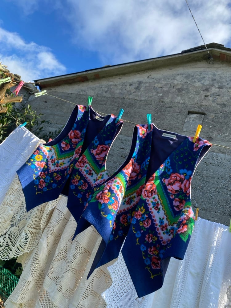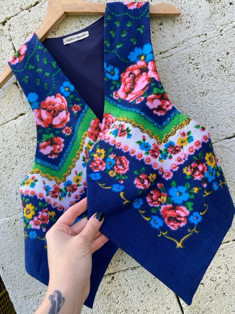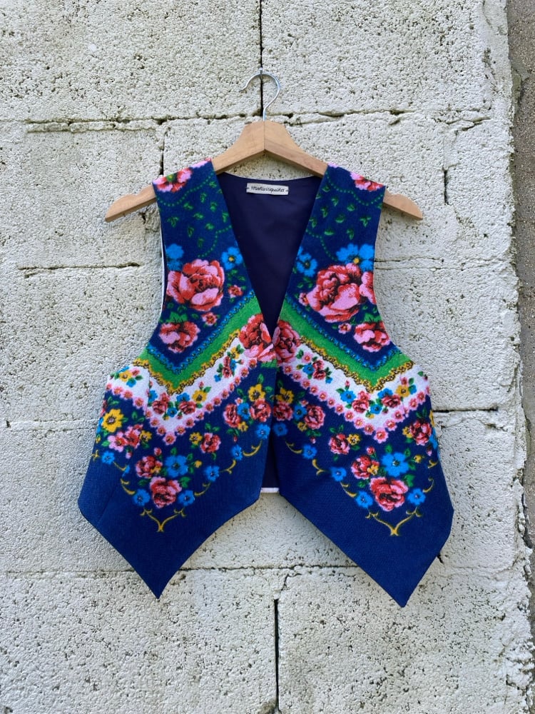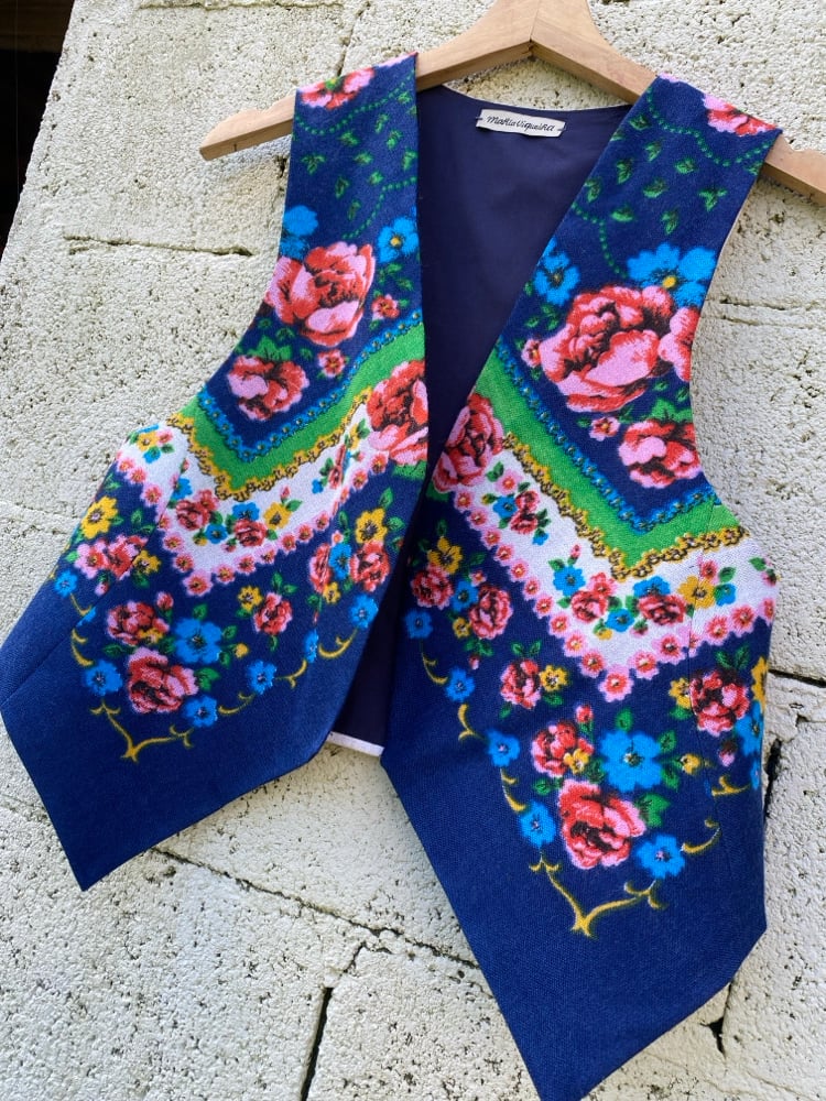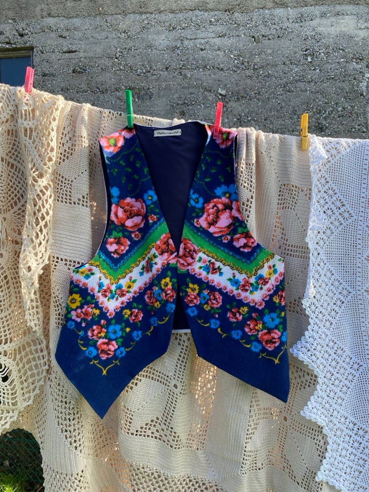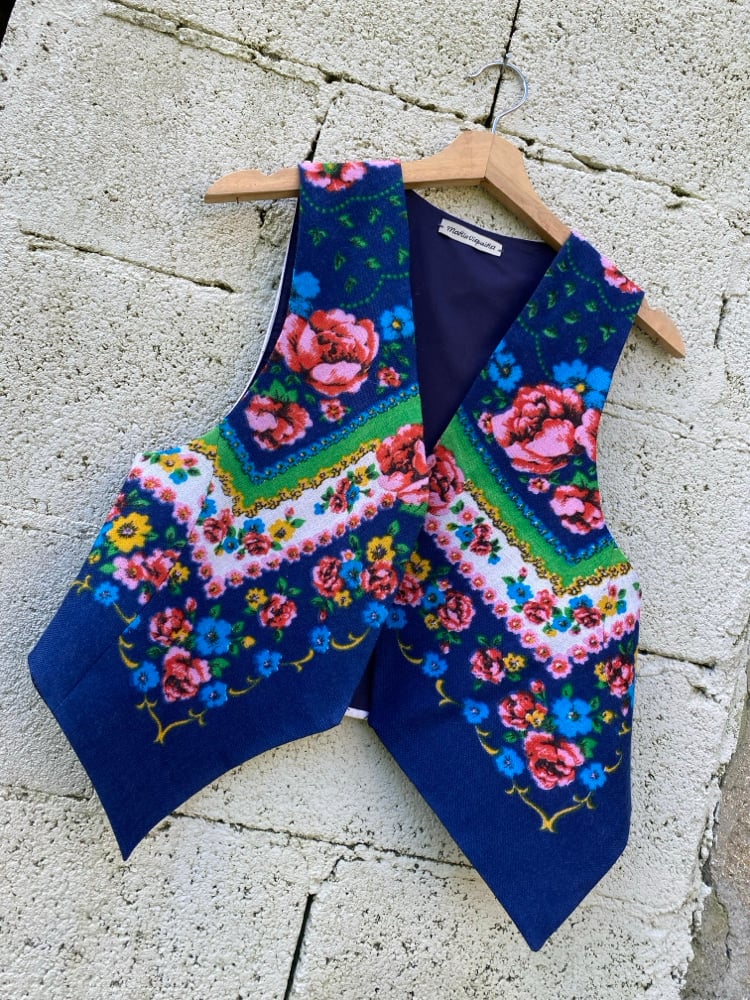Chaleco FOLIADA. Feito a ma. Feito cun pano de la antigo, dos anos 60. Espalda de liño tradicional. Está forrado. DESEÑO EXCLUSIVO! Só temos dous, e non se van a facer outras iguais!