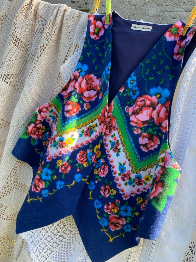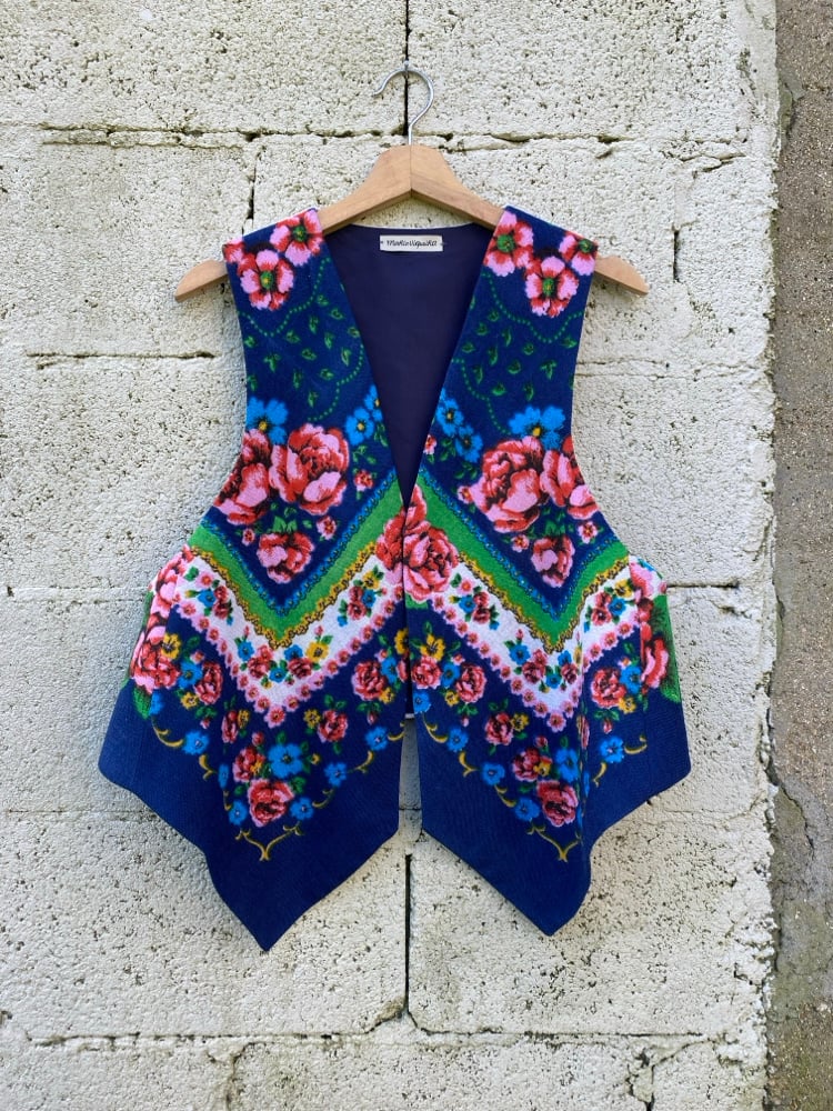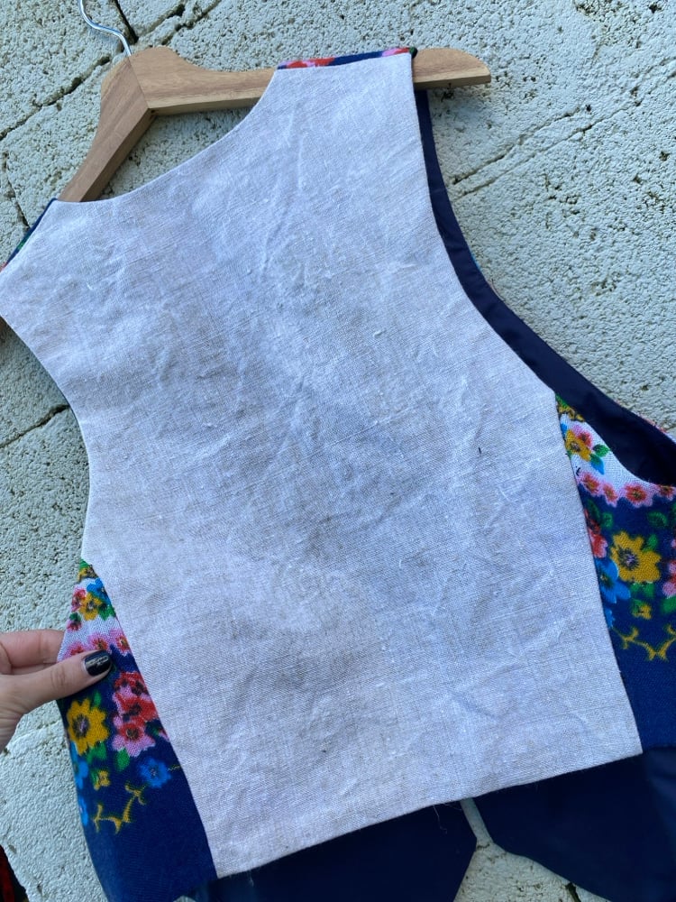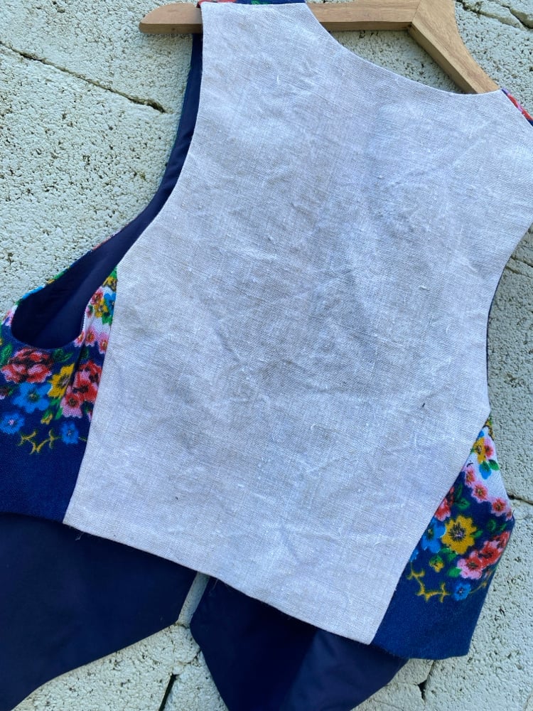 Chaleco FOLIADA. Feito a ma. Feito cun pano de la antigo, dos anos 60. Espalda de liño tradicional. Está forrado. DESEÑO EXCLUSIVO! Só temos dous, e non se van a facer outras iguais!