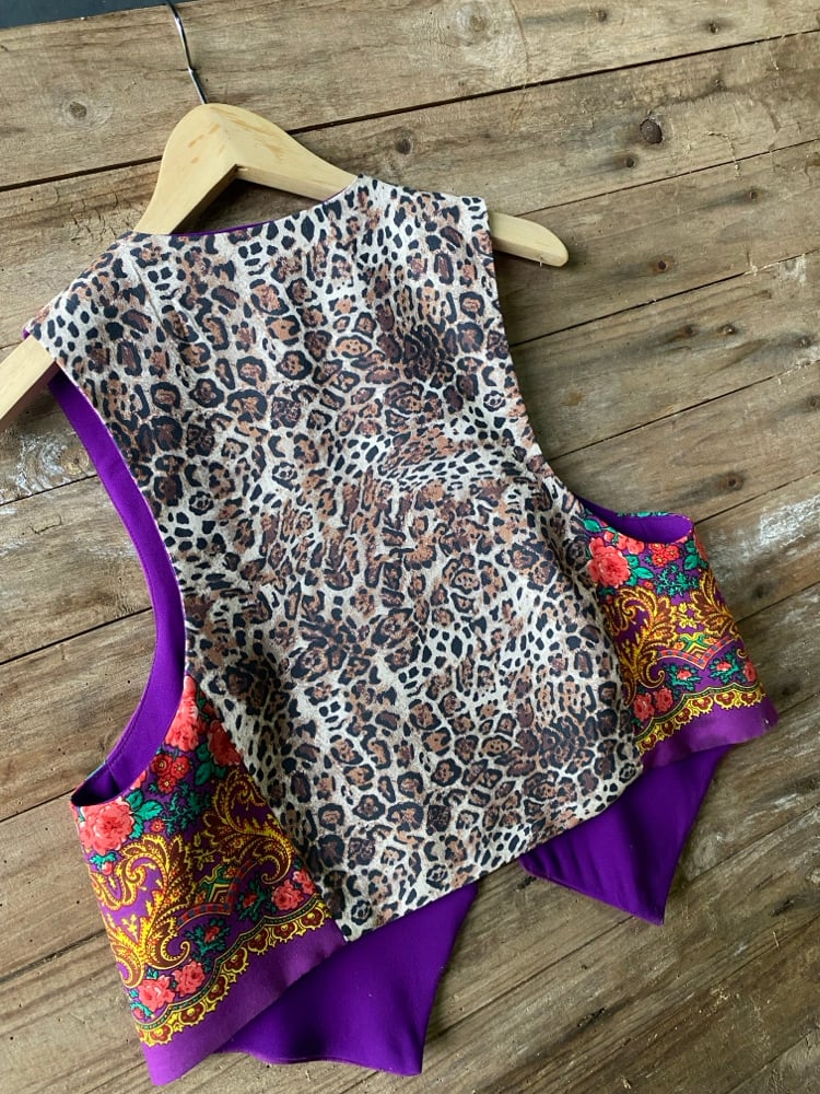 Chaleco FOLIADA. Feito a man. Feito cun pano tradicional. Espalda é de crepe cor negro. Está forrado.