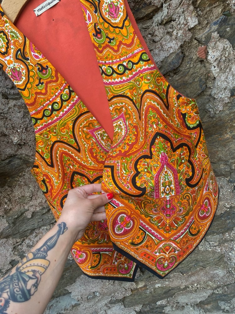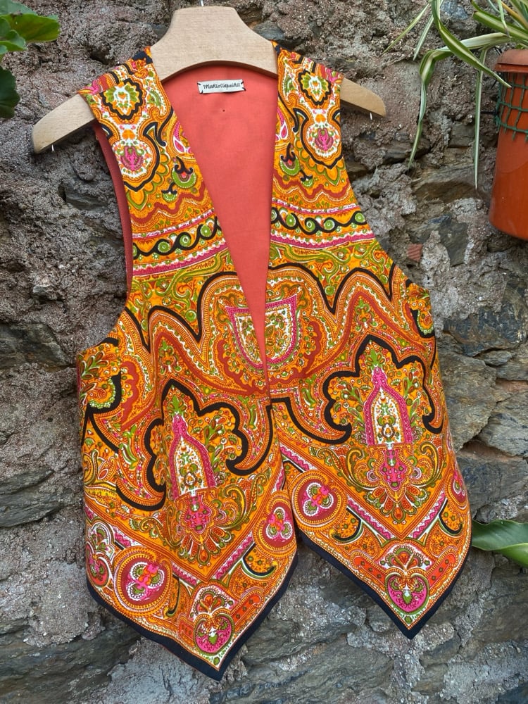 Chaleco FOLIADA. Feito con un pano tradiciona. Está forrado.