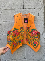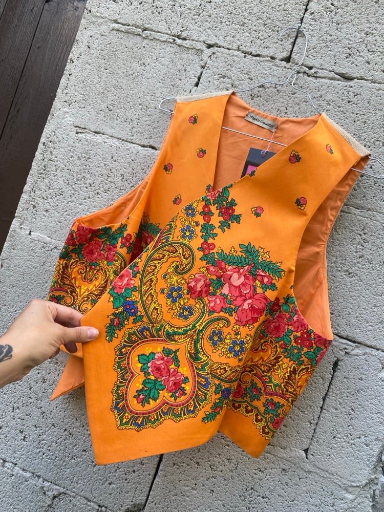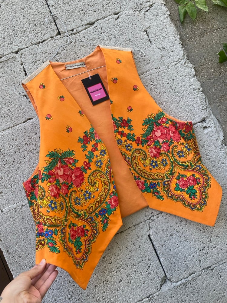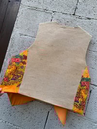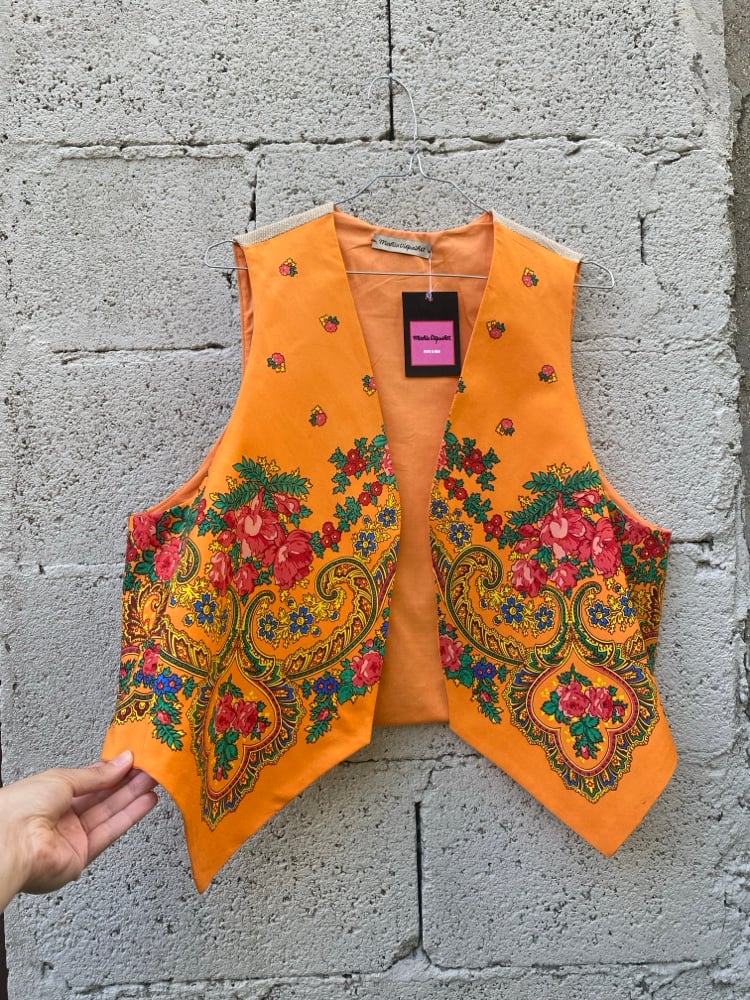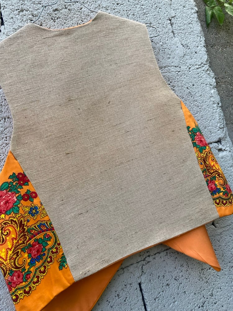 Chaleco FOLIADA. Feito con un pano tradicional, a espalda é tea de saco, està forrado.
