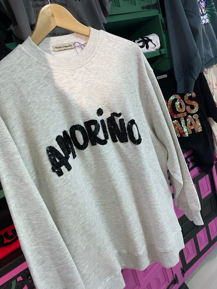 Suadoiro bordado a man. AMORIÑO GRIS. Talla S. En StOCK!