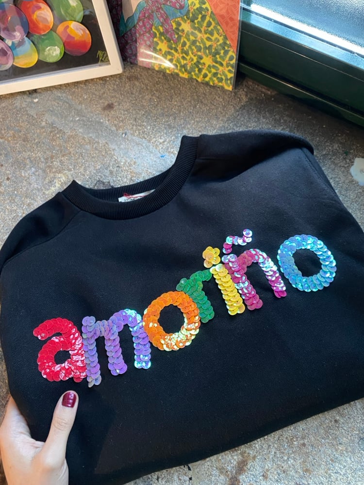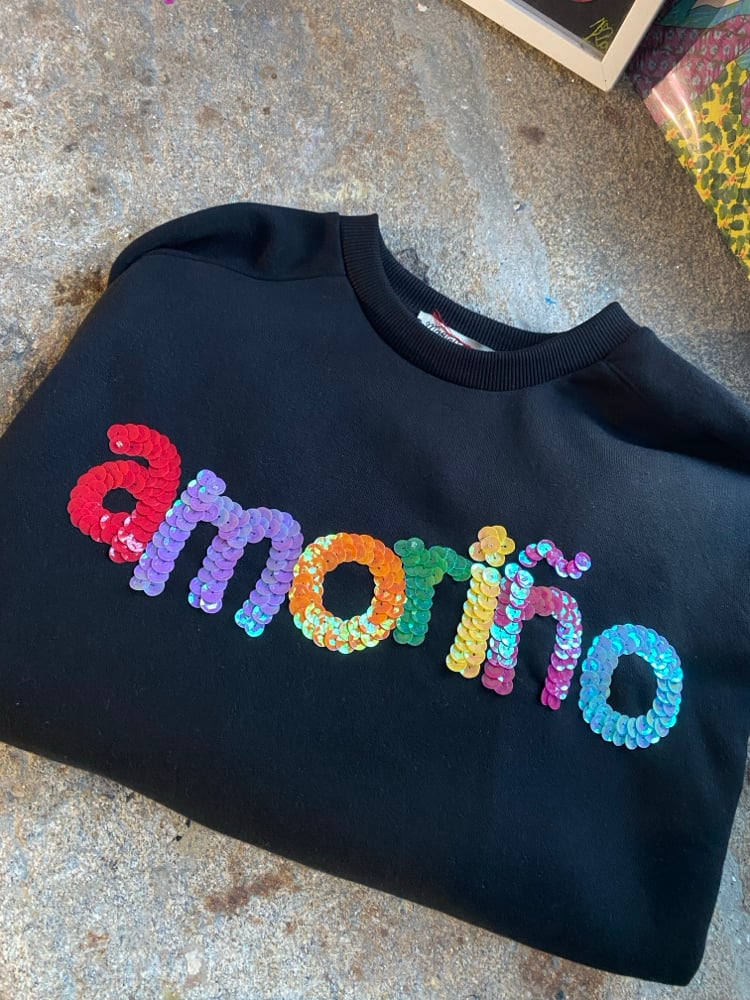 Suadoiro bordado a man. AMORIÑO negro. Varias tallas.