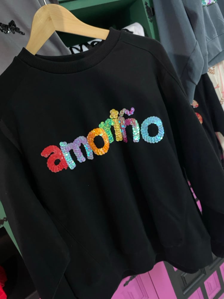 Suadoiro bordado a man. Negro con letras cores 😉