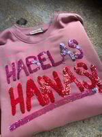 Suadoiro bordado a man. HABELAS HAINAS rosa. Varias tallas. Por encarga!