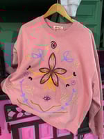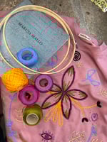 Suadoiro bordado a man. Rosa con bordado en cores 😉 Son deseños exclusivos! Nunca facemos dous exactamente iguais! Poden cambiar algunha cor, distribución ou tipografía. Para que se traten de pezas únicas!